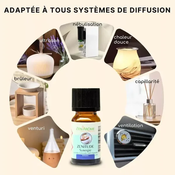 Notre synergie Zenitude est le fruit d'une recherche minutieuse destinée à vous proposer un mélange de différentes huiles essentielles 100% pures et naturelles, non modifiées, non diluées, non déterpénées, non rectifiées et non reconstituées.